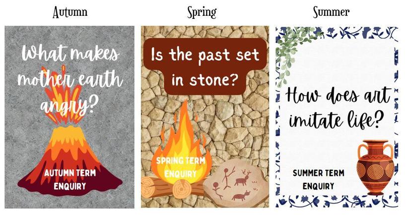 Within Year 3, our curriculum is taught across the year through our three enquiries. The enquiries all have an overarching question which the children work towards answering through an authentic outcome. Our enquiries are developed by driving and enhancing subjects. In addition, our enquiries connect to our 6A curriculum principles, and shape the way the enquiries are planned and delivered.